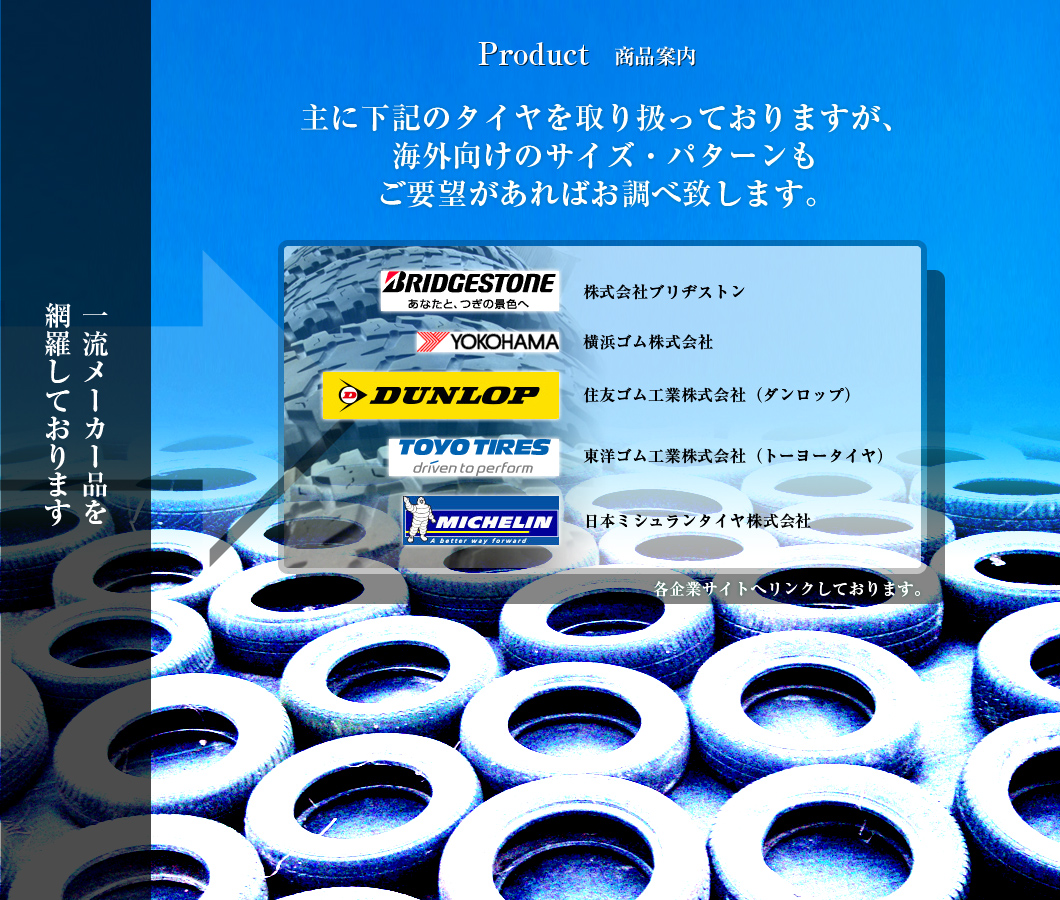 株式会社板野商事では多様なメーカー・サイズのタイヤに対応しております。